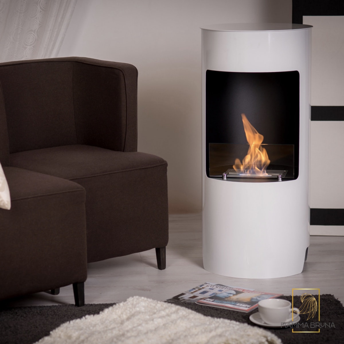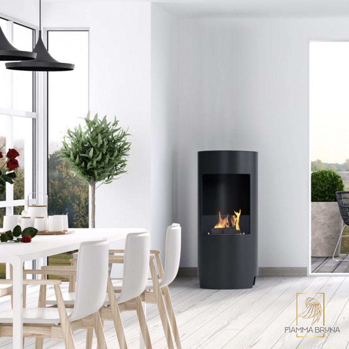 You can enjoy the look of a real wood burning stove with this ventless freestanding bio ethanol fireplace style which is appropriate for indoor as well as outdoor use.