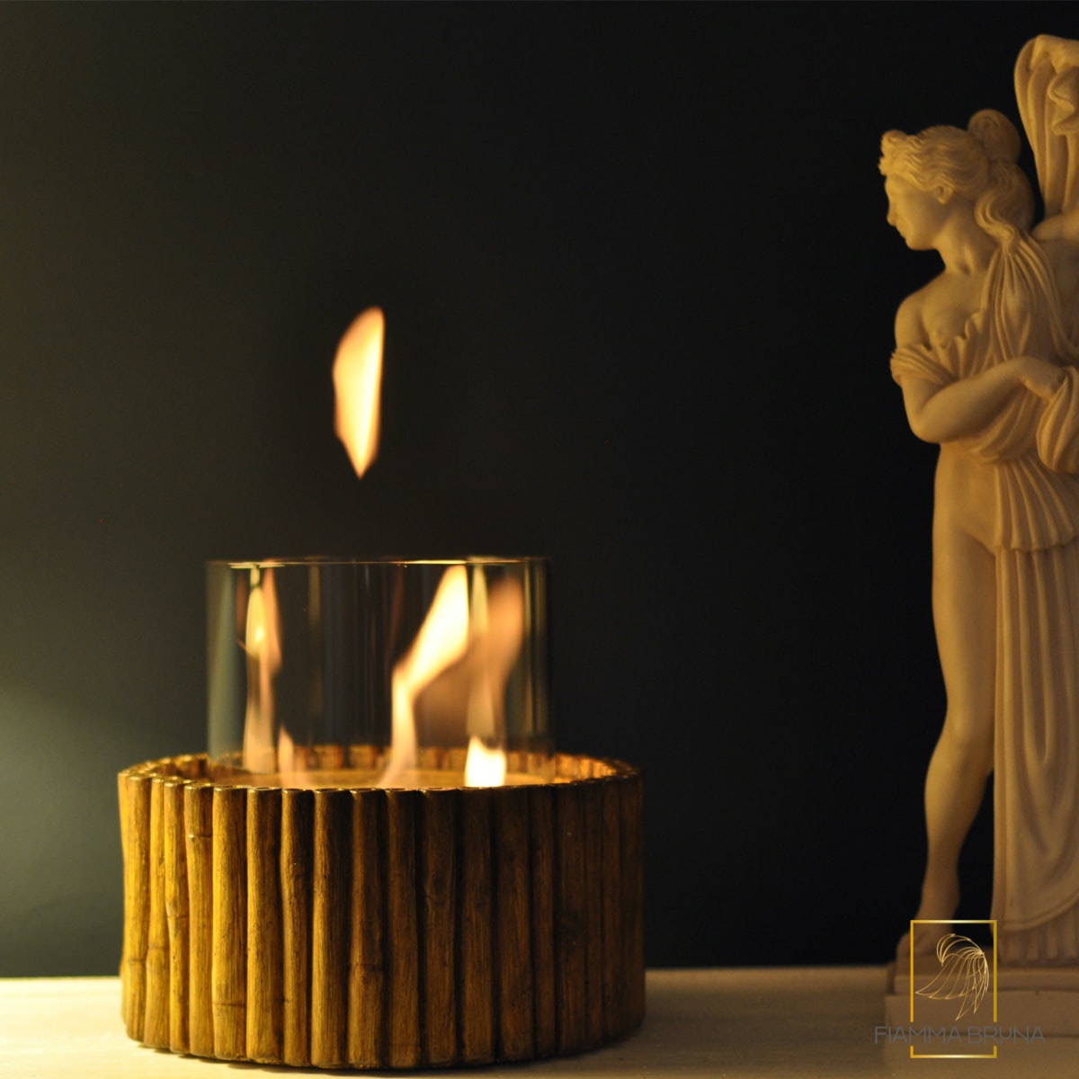 This hand-crafted tabletop portable bioethanol stone fireplace is a reminiscent of bamboo which provides warmth to our table chats.